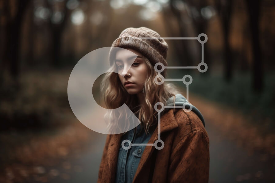 Intra Συλλεκτικό Ξύλινο Παζλ Plywood 4mm – Στοχαστική νεαρή γυναίκα στη μέση ενός δρόμου που περιβάλλεται από δέντρα Σε Ξύλινο Κουτί – Διαστάσεις Puzzle: 10×10 cm – 25 κομμάτια
