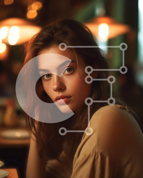 Intra Συλλεκτικό Ξύλινο Παζλ Plywood 4mm – Στοχαστική νεαρή γυναίκα με μπεζ πουκάμισο κάθεται σε αμυδρά φωτισμένο εστιατόριο Σε Ξύλινο Κουτί – Διαστάσεις Puzzle: 10×10 cm – 25 κομμάτια