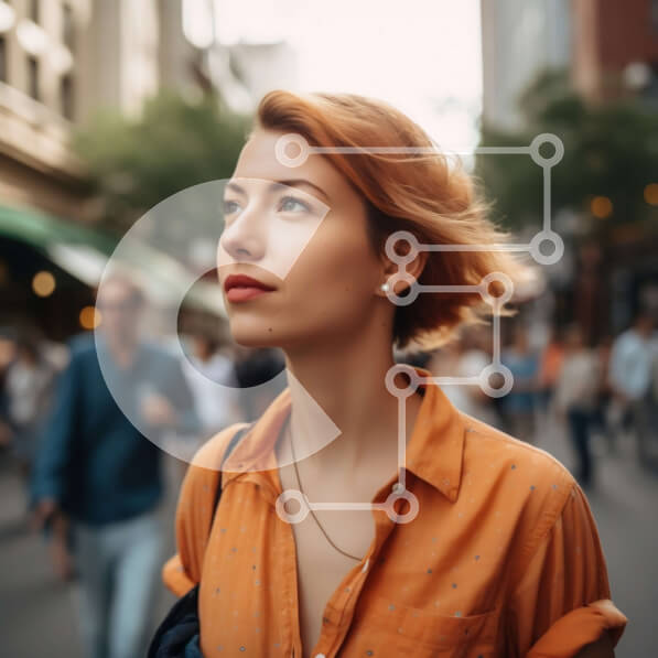 Intra Συλλεκτικό Ξύλινο Παζλ Plywood 4mm – Στοχαστική νεαρή γυναίκα σε έναν πολυσύχναστο δρόμο της πόλης Σε Ξύλινο Κουτί – Διαστάσεις Puzzle: 10×10 cm – 25 κομμάτια