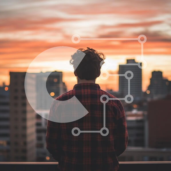 Intra Συλλεκτικό Ξύλινο Παζλ Plywood 4mm – Στοχαστική στιγμή στο ηλιοβασίλεμα πάνω από τον ορίζοντα της πόλης Σε Ξύλινο Κουτί – Διαστάσεις Puzzle: 10×10 cm – 25 κομμάτια