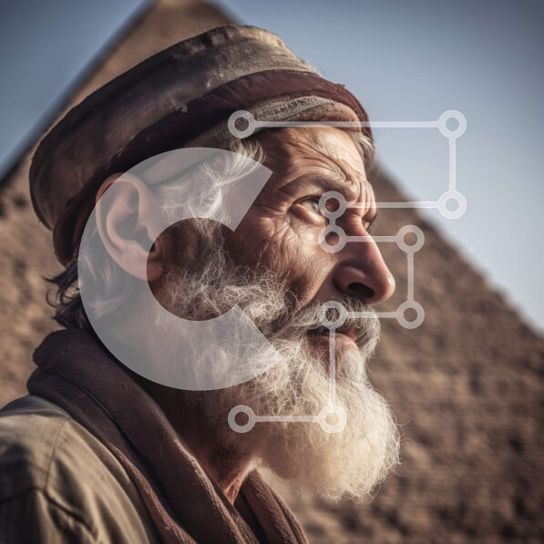 Intra Συλλεκτικό Ξύλινο Παζλ Plywood 4mm – Στοχαστικός ηλικιωμένος μπροστά από την πυραμίδα μια καθαρή μέρα Σε Ξύλινο Κουτί – Διαστάσεις Puzzle: 10×10 cm – 25 κομμάτια