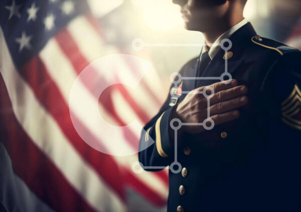 Intra Συλλεκτικό Ξύλινο Παζλ Plywood 4mm – Στρατιωτικό μέλος με στολή που στέκεται μπροστά από αμερικανικές σημαίες Σε Ξύλινο Κουτί – Διαστάσεις Puzzle: 10×10 cm – 25 κομμάτια