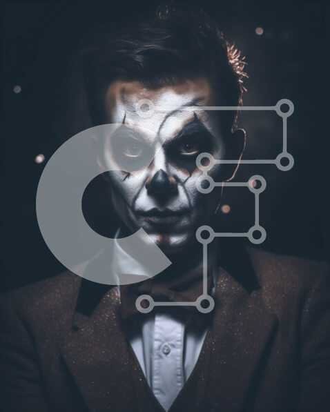 Intra Συλλεκτικό Ξύλινο Παζλ Plywood 4mm – Συναρπαστική εικόνα ενός άνδρα με κοστούμι και παπιγιόν με λευκή μπογιά προσώπου και μαύρο eyeliner Σε Ξύλινο Κουτί – Διαστάσεις Puzzle: 10×10 cm – 25 κομμάτια