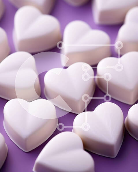 Intra Συλλεκτικό Ξύλινο Παζλ Plywood 4mm – Συστάδα από λευκές καραμέλες σε σχήμα καρδιάς σε μωβ φόντο Σε Ξύλινο Κουτί – Διαστάσεις: 10×10 cm – 25 κομμάτια
