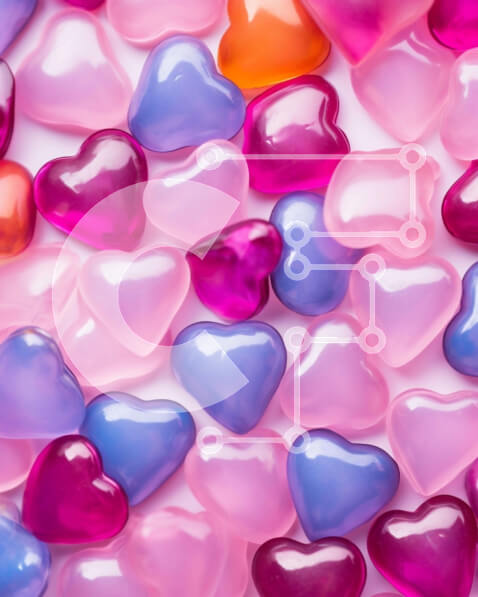 Intra Συλλεκτικό Ξύλινο Παζλ Plywood 4mm – Συστάδα από ροζ, μωβ και μπλε πλαστικές χάντρες σε σχήμα καρδιάς Σε Ξύλινο Κουτί – Διαστάσεις Puzzle: 10×10 cm – 25 κομμάτια
