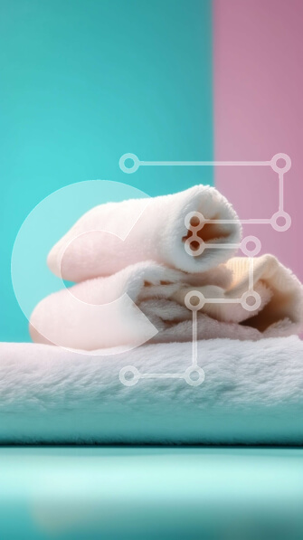 Intra Συλλεκτικό Ξύλινο Παζλ Plywood 4mm – Σωρός από λευκές και ροζ πετσέτες σε μια πολύχρωμη επιφάνεια Σε Ξύλινο Κουτί – Διαστάσεις Puzzle: 10×10 cm – 25 κομμάτια