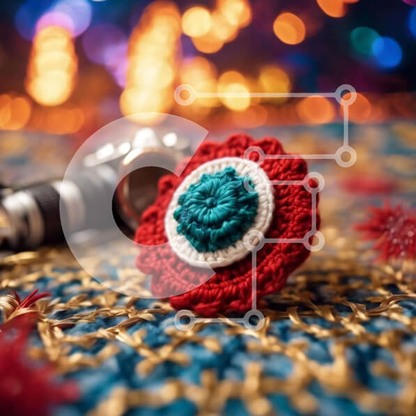 Intra Συλλεκτικό Ξύλινο Παζλ Plywood 4mm – Σύνθεση καρφίτσας λουλουδιών με κροσέ κόκκινο και μπλε Σε Ξύλινο Κουτί – Διαστάσεις: 10×10 cm – 25 κομμάτια