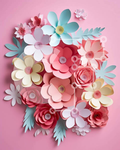 Intra Συλλεκτικό Ξύλινο Παζλ Plywood 4mm – Σύνθεση πολύχρωμων λουλουδιών από χαρτί σε ροζ φόντο Σε Ξύλινο Κουτί – Διαστάσεις Puzzle: 10×10 cm – 25 κομμάτια