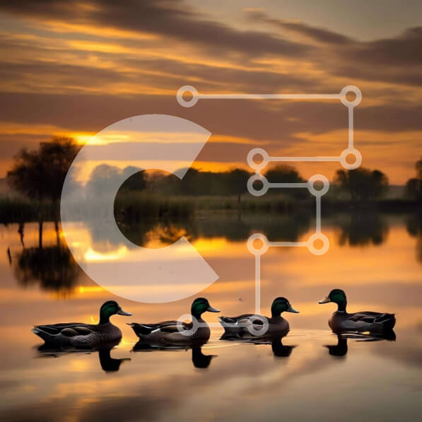 Intra Συλλεκτικό Ξύλινο Παζλ Plywood 4mm – Τέσσερις πάπιες που κολυμπούν στο νερό στο ηλιοβασίλεμα Σε Ξύλινο Κουτί – Διαστάσεις: 10×10 cm – 25 κομμάτια