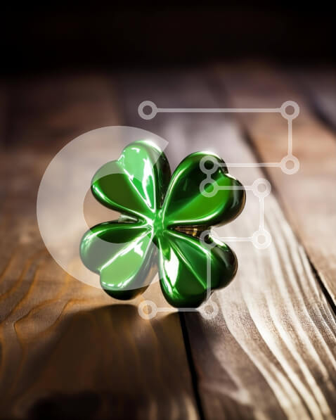 Intra Συλλεκτικό Ξύλινο Παζλ Plywood 4mm – Τετράφυλλο τριφύλλι σε παλιό ξύλινο τραπέζι Σε Ξύλινο Κουτί – Διαστάσεις: 10×10 cm – 25 κομμάτια