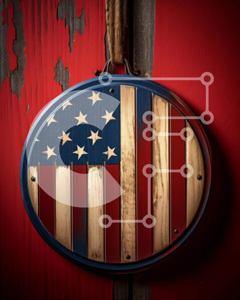 Intra Συλλεκτικό Ξύλινο Παζλ Plywood 4mm – Τηγάνι σε σχήμα αμερικανικής σημαίας σε κόκκινο ξύλινο τοίχο Σε Ξύλινο Κουτί – Διαστάσεις Puzzle: 10×10 cm – 25 κομμάτια