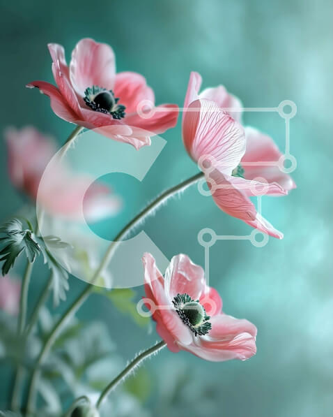 Intra Συλλεκτικό Ξύλινο Παζλ Plywood 4mm – Τρία ροζ λουλούδια ανεμώνης σε πράσινα φύλλα και τιρκουάζ φόντο Σε Ξύλινο Κουτί – Διαστάσεις: 10×10 cm – 25 κομμάτια