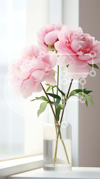 Intra Συλλεκτικό Ξύλινο Παζλ Plywood 4mm – Τρία φρέσκα ροζ λουλούδια σε ένα διάφανο βάζο στο περβάζι του παραθύρου Σε Ξύλινο Κουτί – Διαστάσεις: 10×10 cm – 25 κομμάτια