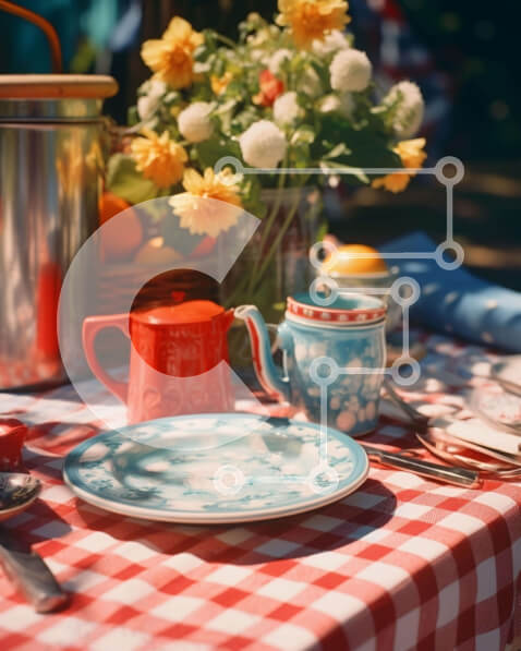 Intra Συλλεκτικό Ξύλινο Παζλ Plywood 4mm – Τραπέζι πικνίκ με λουλούδια και σκεύη Σε Ξύλινο Κουτί – Διαστάσεις Puzzle: 10×10 cm – 25 κομμάτια