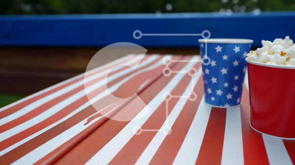 Intra Συλλεκτικό Ξύλινο Παζλ Plywood 4mm – Τραπέζι πικνίκ με αμερικανικό θέμα με ποπ κορν και φλιτζάνια νερού Σε Ξύλινο Κουτί – Διαστάσεις Puzzle: 10×10 cm – 25 κομμάτια