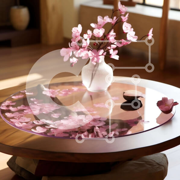 Intra Συλλεκτικό Ξύλινο Παζλ Plywood 4mm – Τραπεζάκι σαλονιού γυάλινο με ροζ λουλούδια μπροστά από το τζάκι Σε Ξύλινο Κουτί – Διαστάσεις Puzzle: 10×10 cm – 25 κομμάτια