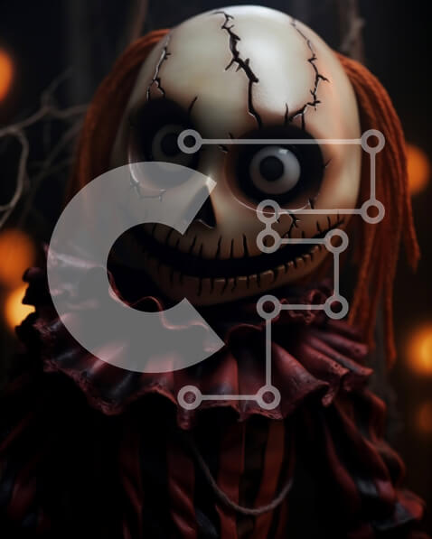 Intra Συλλεκτικό Ξύλινο Παζλ Plywood 4mm – Τρομακτική κούκλα αποκριών με κόκκινα μαλλιά και μεγάλα μάτια Σε Ξύλινο Κουτί – Διαστάσεις Puzzle: 10×10 cm – 25 κομμάτια