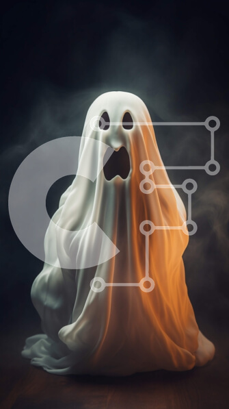 Intra Συλλεκτικό Ξύλινο Παζλ Plywood 4mm – Τρομακτικό φάντασμα σε πορτοκαλί τραπέζι με καπνό Σε Ξύλινο Κουτί – Διαστάσεις Puzzle: 10×10 cm – 25 κομμάτια