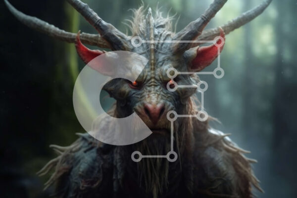 Intra Συλλεκτικό Ξύλινο Παζλ Plywood 4mm – Τρομακτική εικόνα μιας δαιμονικής κατσίκας που στέκεται σε ένα σκοτεινό δάσος Σε Ξύλινο Κουτί – Διαστάσεις: 10×10 cm – 25 κομμάτια