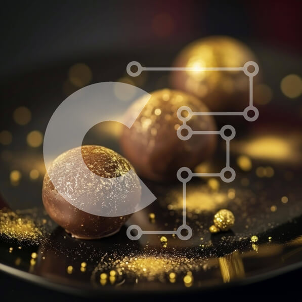 Intra Συλλεκτικό Ξύλινο Παζλ Plywood 4mm – Τρούφες σοκολάτας σε μαύρο πιάτο με χρυσό ψεκασμό Σε Ξύλινο Κουτί – Διαστάσεις: 10×10 cm – 25 κομμάτια