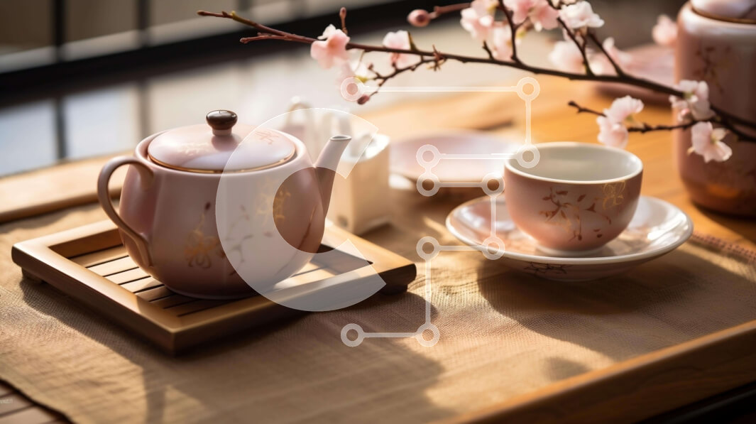 Intra Συλλεκτικό Ξύλινο Παζλ Plywood 4mm – Τσάι και ροζ άνθη στο δίσκο Σε Ξύλινο Κουτί – Διαστάσεις: 10×10 cm – 25 κομμάτια