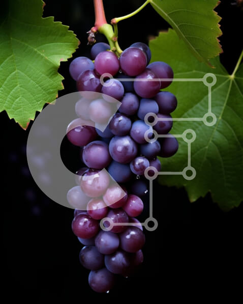 Intra Συλλεκτικό Ξύλινο Παζλ Plywood 4mm – Τσαμπί μωβ σταφύλια στο αμπέλι με πράσινα φύλλα Σε Ξύλινο Κουτί – Διαστάσεις: 10×10 cm – 25 κομμάτια
