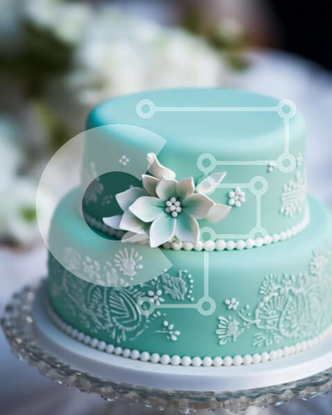Intra Συλλεκτικό Ξύλινο Παζλ Plywood 4mm – Τυρκουάζ κέικ με λευκά διακοσμητικά και λουλούδια Σε Ξύλινο Κουτί – Διαστάσεις: 10×10 cm – 25 κομμάτια