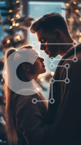Intra Συλλεκτικό Ξύλινο Παζλ Plywood 4mm – Υπέροχη εικόνα ενός νεαρού ζευγαριού μπροστά από ένα χριστουγεννιάτικο δέντρο Σε Ξύλινο Κουτί – Διαστάσεις: 10×10 cm – 25 κομμάτια