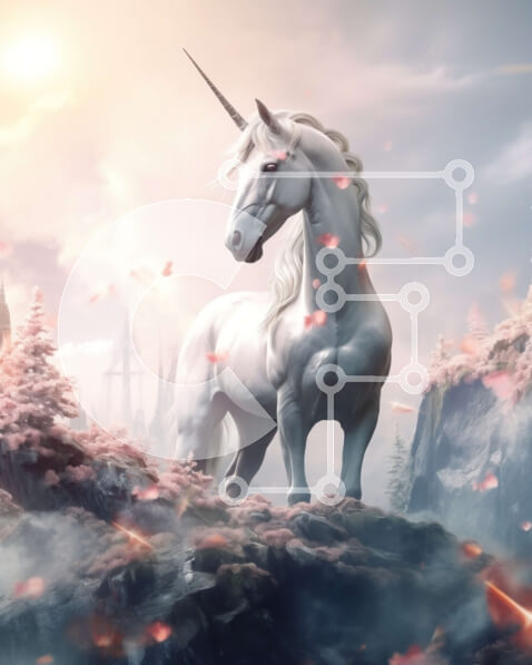 Intra Συλλεκτικό Ξύλινο Παζλ Plywood 4mm – Υπέροχος λευκός μονόκερος σε μια βραχώδη εξοχή με θέα σε ένα ομιχλώδες τοπίο Σε Ξύλινο Κουτί – Διαστάσεις: 10×10 cm – 25 κομμάτια