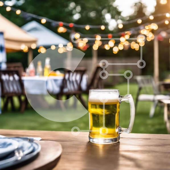 Intra Συλλεκτικό Ξύλινο Παζλ Plywood 4mm – Υπαίθριο πάρτι με ποτήρι μπύρας σε ξύλινο τραπέζι Σε Ξύλινο Κουτί – Διαστάσεις: 10×10 cm – 25 κομμάτια