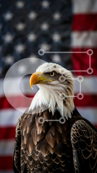 Intra Συλλεκτικό Ξύλινο Παζλ Plywood 4mm – Φαλακρός αετός που στέκεται μπροστά από την αμερικανική σημαία Σε Ξύλινο Κουτί – Διαστάσεις: 10×10 cm – 25 κομμάτια