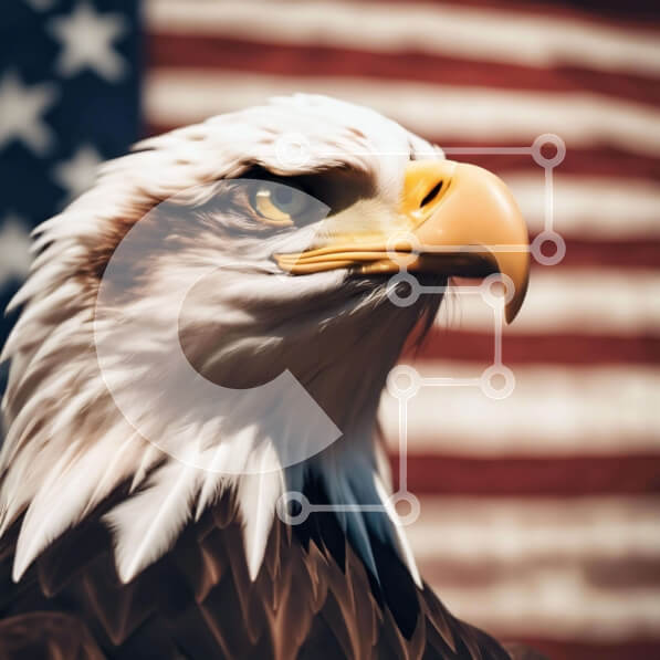 Intra Συλλεκτικό Ξύλινο Παζλ Plywood 4mm – Φαλακρός αετός μπροστά από την αμερικανική σημαία Σε Ξύλινο Κουτί – Διαστάσεις: 10×10 cm – 25 κομμάτια