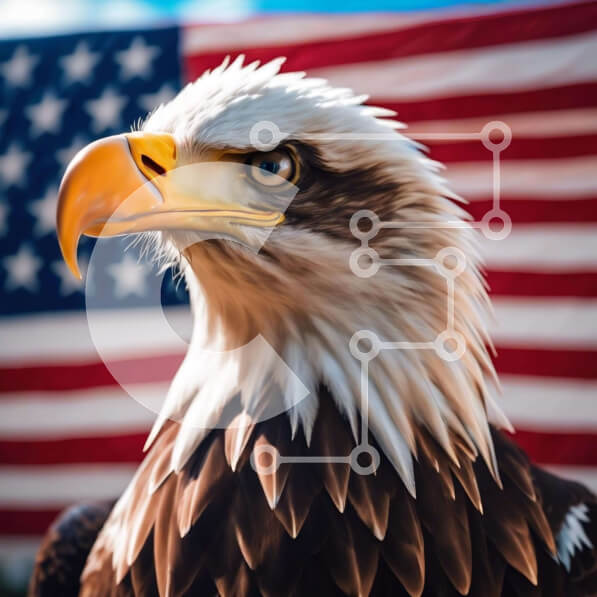 Intra Συλλεκτικό Ξύλινο Παζλ Plywood 4mm – Φαλακρός αετός μπροστά από την αμερικανική σημαία Σε Ξύλινο Κουτί – Διαστάσεις: 10×10 cm – 25 κομμάτια
