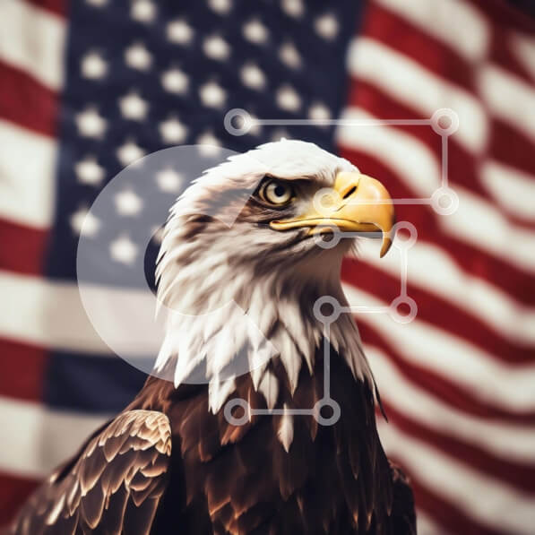 Intra Συλλεκτικό Ξύλινο Παζλ Plywood 4mm – Φαλακρός αετός μπροστά από την αμερικανική σημαία Σε Ξύλινο Κουτί – Διαστάσεις: 10×10 cm – 25 κομμάτια
