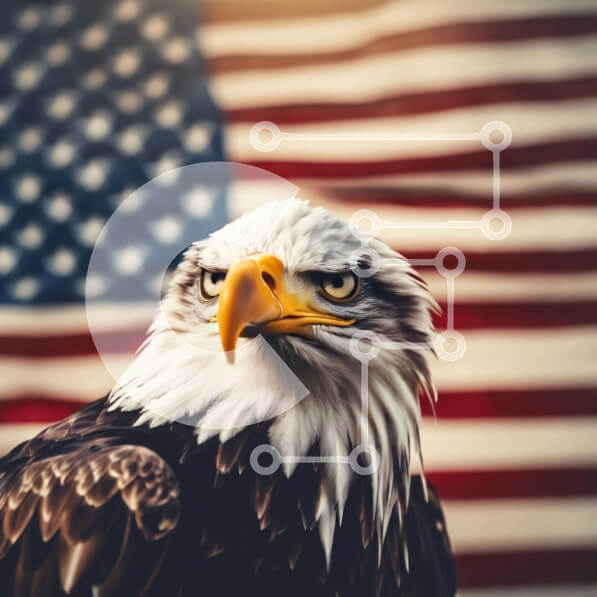 Intra Συλλεκτικό Ξύλινο Παζλ Plywood 4mm – Φαλακρός αετός μπροστά από την αμερικανική σημαία Σε Ξύλινο Κουτί – Διαστάσεις: 10×10 cm – 25 κομμάτια