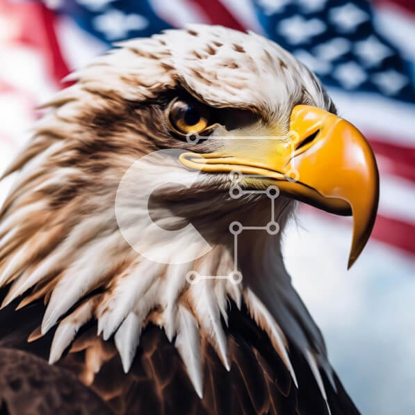 Intra Συλλεκτικό Ξύλινο Παζλ Plywood 4mm – Φαλακρός αετός μπροστά από την αμερικανική σημαία Σε Ξύλινο Κουτί – Διαστάσεις: 10×10 cm – 25 κομμάτια