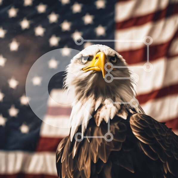 Intra Συλλεκτικό Ξύλινο Παζλ Plywood 4mm – Φαλακρός αετός μπροστά από την αμερικανική σημαία Σε Ξύλινο Κουτί – Διαστάσεις: 10×10 cm – 25 κομμάτια
