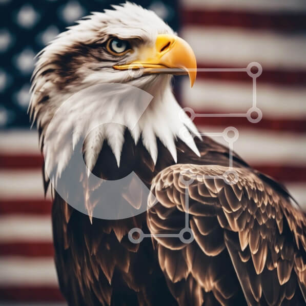 Intra Συλλεκτικό Ξύλινο Παζλ Plywood 4mm – Φαλακρός αετός μπροστά από την αμερικανική σημαία Σε Ξύλινο Κουτί – Διαστάσεις: 10×10 cm – 25 κομμάτια