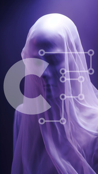 Intra Συλλεκτικό Ξύλινο Παζλ Plywood 4mm – Φιγούρα σαν φάντασμα με λευκά ρούχα σε σκούρο μωβ φόντο Σε Ξύλινο Κουτί – Διαστάσεις Puzzle: 10×10 cm – 25 κομμάτια