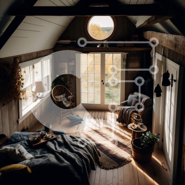 Intra Συλλεκτικό Ξύλινο Παζλ Plywood 4mm – Φιλόξενο υπνοδωμάτιο σε σοφίτα με ξύλινες πινελιές και φυσικό φως Σε Ξύλινο Κουτί – Διαστάσεις Puzzle: 10×10 cm – 25 κομμάτια