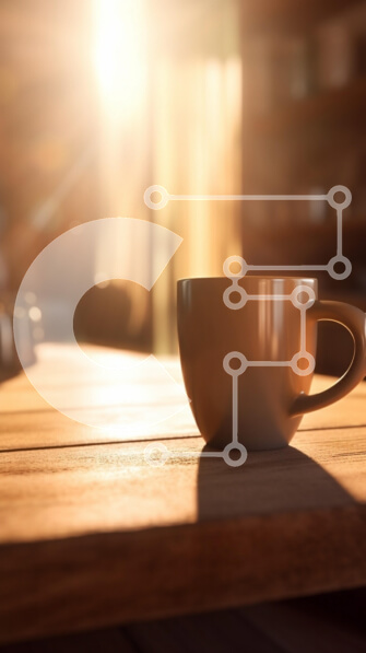 Intra Συλλεκτικό Ξύλινο Παζλ Plywood 4mm – Φλιτζάνι καφέ στο ζεστό φως του ήλιου σε ξύλινο τραπέζι Σε Ξύλινο Κουτί – Διαστάσεις: 10×10 cm – 25 κομμάτια