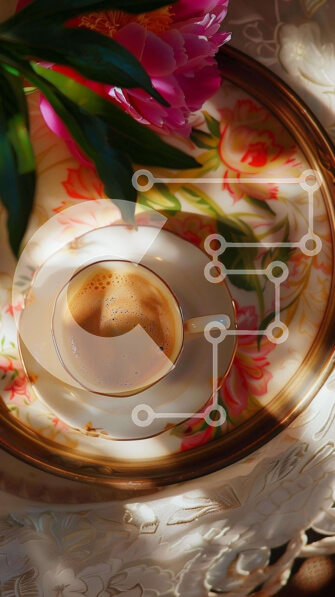 Intra Συλλεκτικό Ξύλινο Παζλ Plywood 4mm – Φλιτζάνι καφέ σε περίτεχνο πιάτο με λουλούδια Σε Ξύλινο Κουτί – Διαστάσεις: 10×10 cm – 25 κομμάτια