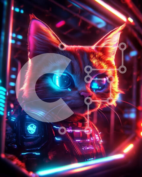 Intra Συλλεκτικό Ξύλινο Παζλ Plywood 4mm – Φουτουριστική γάτα σε σκηνικό επιστημονικής φαντασίας Σε Ξύλινο Κουτί – Διαστάσεις: 10×10 cm – 25 κομμάτια