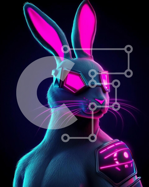 Intra Συλλεκτικό Ξύλινο Παζλ Plywood 4mm – Φουτουριστικός χαρακτήρας κουνελιού σε νέον χρώματα Σε Ξύλινο Κουτί – Διαστάσεις Puzzle: 10×10 cm – 25 κομμάτια