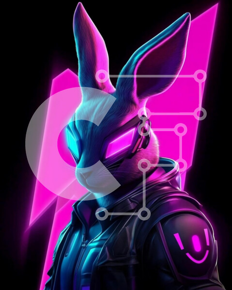 Intra Συλλεκτικό Ξύλινο Παζλ Plywood 4mm – Φουτουριστικός χαρακτήρας κουνελιού σε νέον χρώματα Σε Ξύλινο Κουτί – Διαστάσεις Puzzle: 10×10 cm – 25 κομμάτια