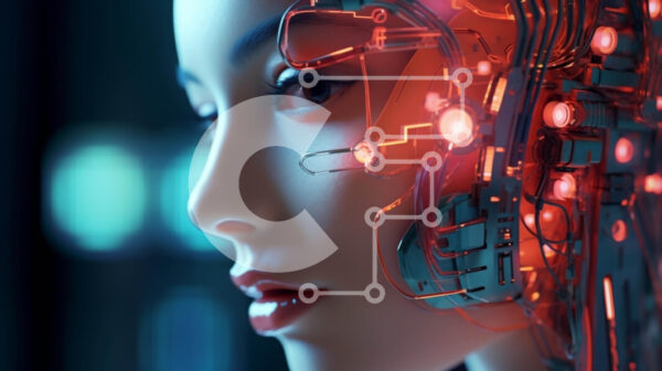 Intra Συλλεκτικό Ξύλινο Παζλ Plywood 4mm – Φουτουριστική γυναίκα με τεχνητό κεφάλι και ηλεκτρονικές συσκευές Σε Ξύλινο Κουτί – Διαστάσεις Puzzle: 10×10 cm – 25 κομμάτια