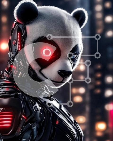 Intra Συλλεκτικό Ξύλινο Παζλ Plywood 4mm – Φουτουριστικό ρομπότ Panda σε αστικό περιβάλλον Σε Ξύλινο Κουτί – Διαστάσεις Puzzle: 10×10 cm – 25 κομμάτια