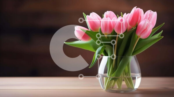 Intra Συλλεκτικό Ξύλινο Παζλ Plywood 4mm – Φρέσκες ροζ τουλίπες σε διαφανές γυάλινο βάζο σε ξύλινο τραπέζι Σε Ξύλινο Κουτί – Διαστάσεις: 10×10 cm – 25 κομμάτια