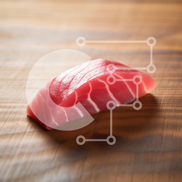 Intra Συλλεκτικό Ξύλινο Παζλ Plywood 4mm – Φρέσκια φέτα σούσι τόνου σε ξύλινη επιφάνεια Σε Ξύλινο Κουτί – Διαστάσεις: 10×10 cm – 25 κομμάτια
