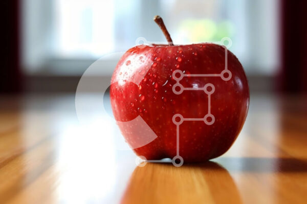 Intra Συλλεκτικό Ξύλινο Παζλ Plywood 4mm – Φρέσκο κόκκινο μήλο σε ξύλινο τραπέζι με θέα στον κήπο Σε Ξύλινο Κουτί – Διαστάσεις: 10×10 cm – 25 κομμάτια